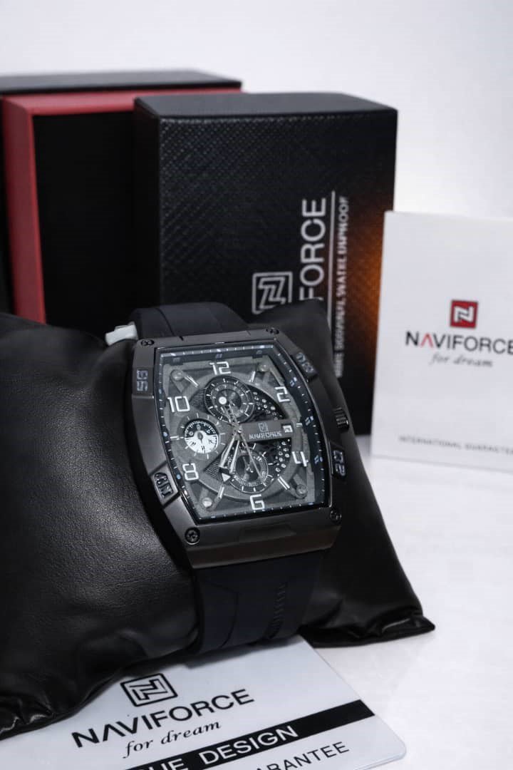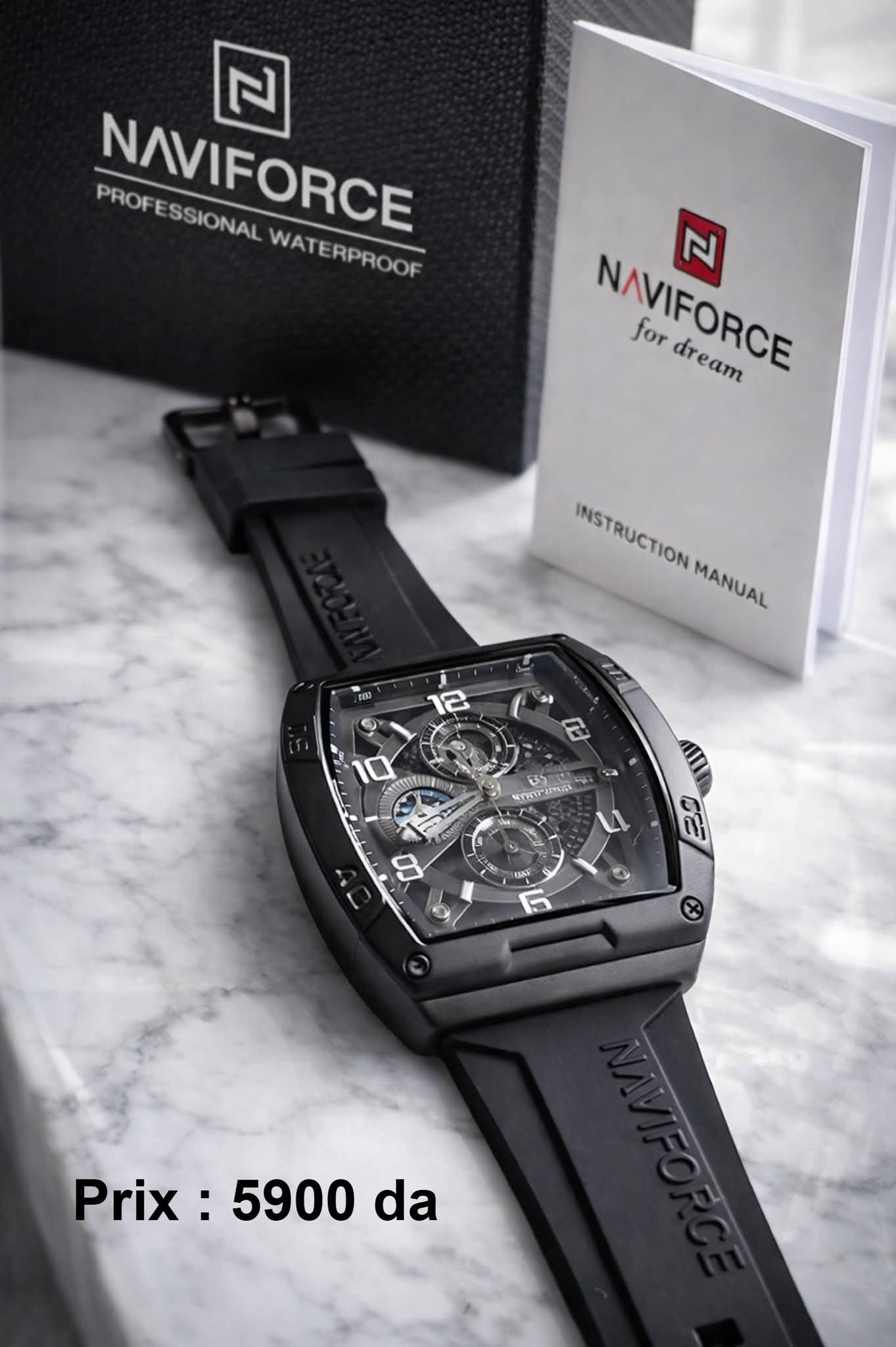 Affirmez un style audacieux avec la montre homme NAVIFORCE Chronographe au boîtier tonneau, un modèle qui combine design innovant, robustesse et élégance sportive.